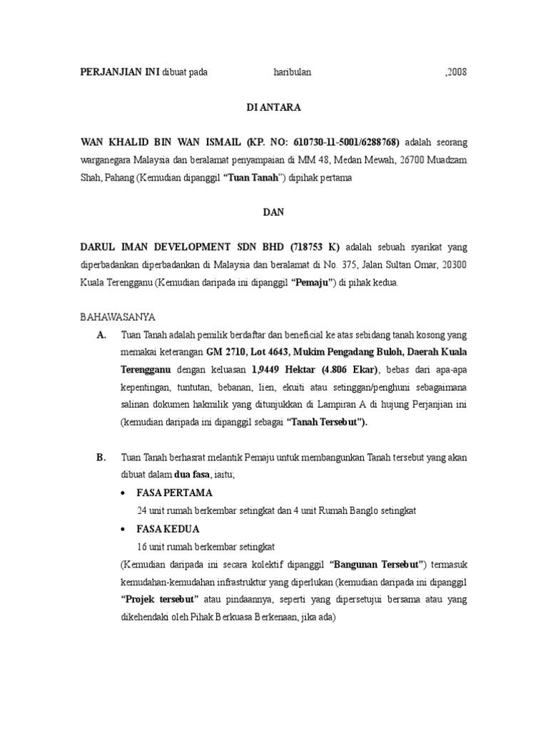 Contoh Perjanjian Antara Kerajaan Dan Syarikat